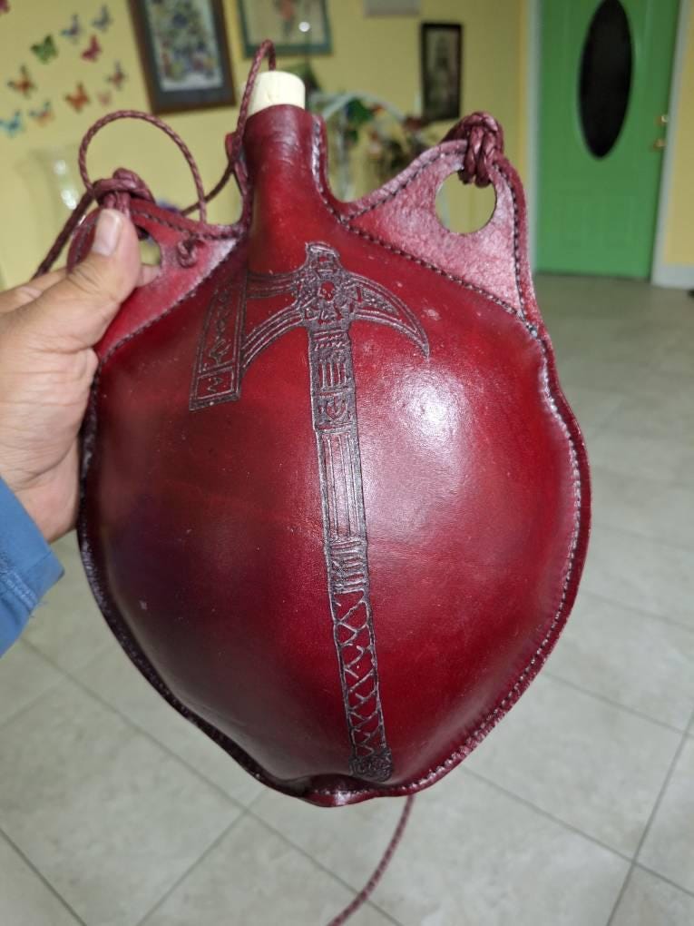 These are The round version of our functional leather costrel/water skin/ water bottles. For the more classic “bota” water skin shaped bottles check out our other listing