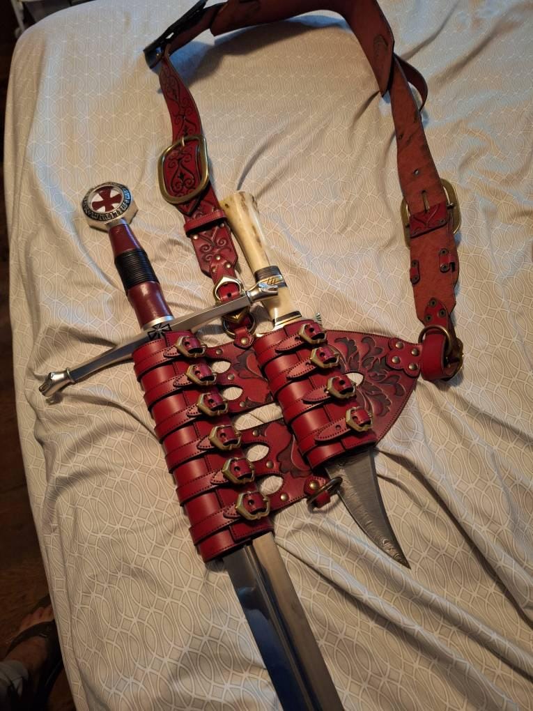 Sits Great on the shoulders looks amazing distributes weight perfectly even with heavier steel arming swords. Great addition to my kit.